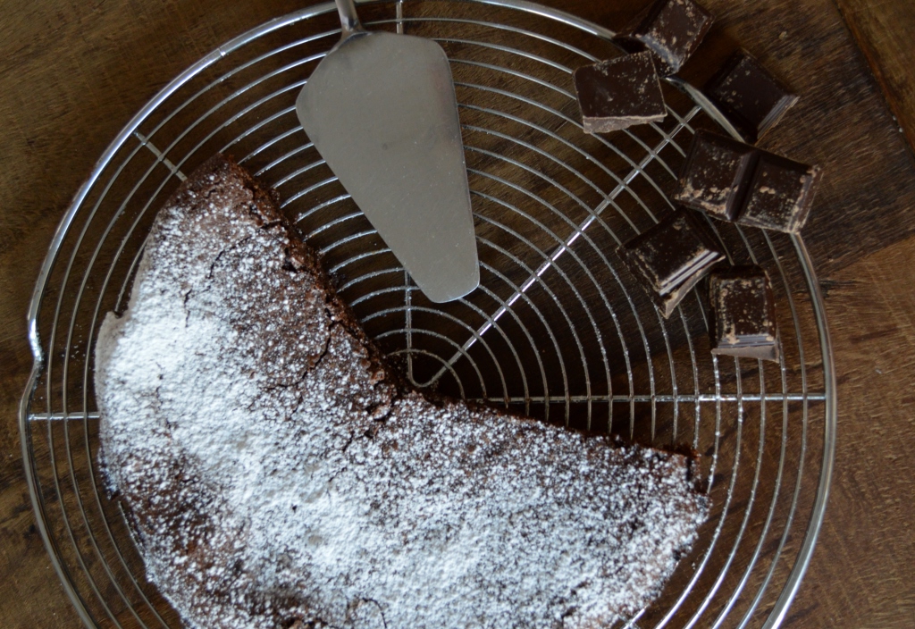 Et maintenant? Faites fondre le beurre et le chocolat cassé en morceaux. Ajoutez les 3 oeufs à la préparation fondue puis incorporez le sucre et la farine. Enfournez 30 minutes à 190°C. Si vous y arrivez, attendez le lendemain pour déguster ce gâteau. Il n’en sera que meilleur !