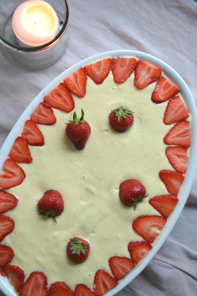 Pardon, je n’ai pas été assez claire : biscuits, crème, fraises, biscuits… Et ainsi de suite :)