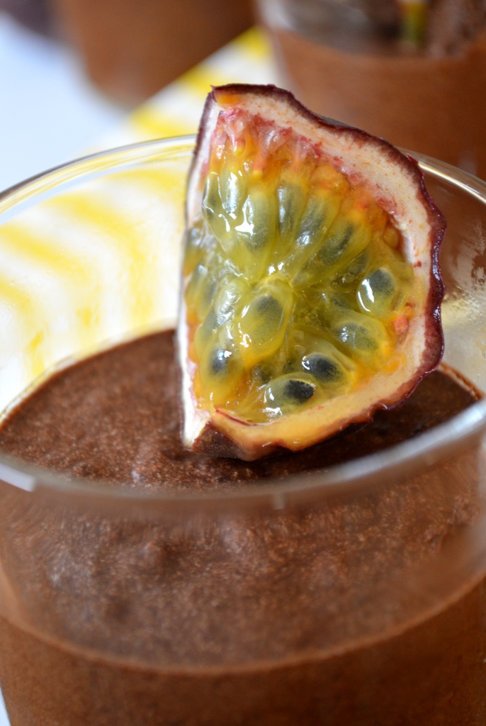 Glaces, beignets, chouchou, crèpes, gaufres… vous vous êtes un peu laissé aller pendant les vacances? Vous sentez que le bouton de votre jean coince un peu? Mais vous ne voulez pas tirer un trait sur le chocolat pour autant, surtout en cette période de rentrée? J’ai la recette qu’il vous faut! Une mousse au chocolat super bonne et super légère inspirée de celle de Julie Andrieu. À table, tout le monde a été conquis, notamment par l’arrière-goût de fruit de la passion qui vient pulser tout ça. Une bonne surprise pour moi qui ne suit pourtant pas du tout adepte des recettes allégées… Donc pas de remords, sortez le chocolat et à table!