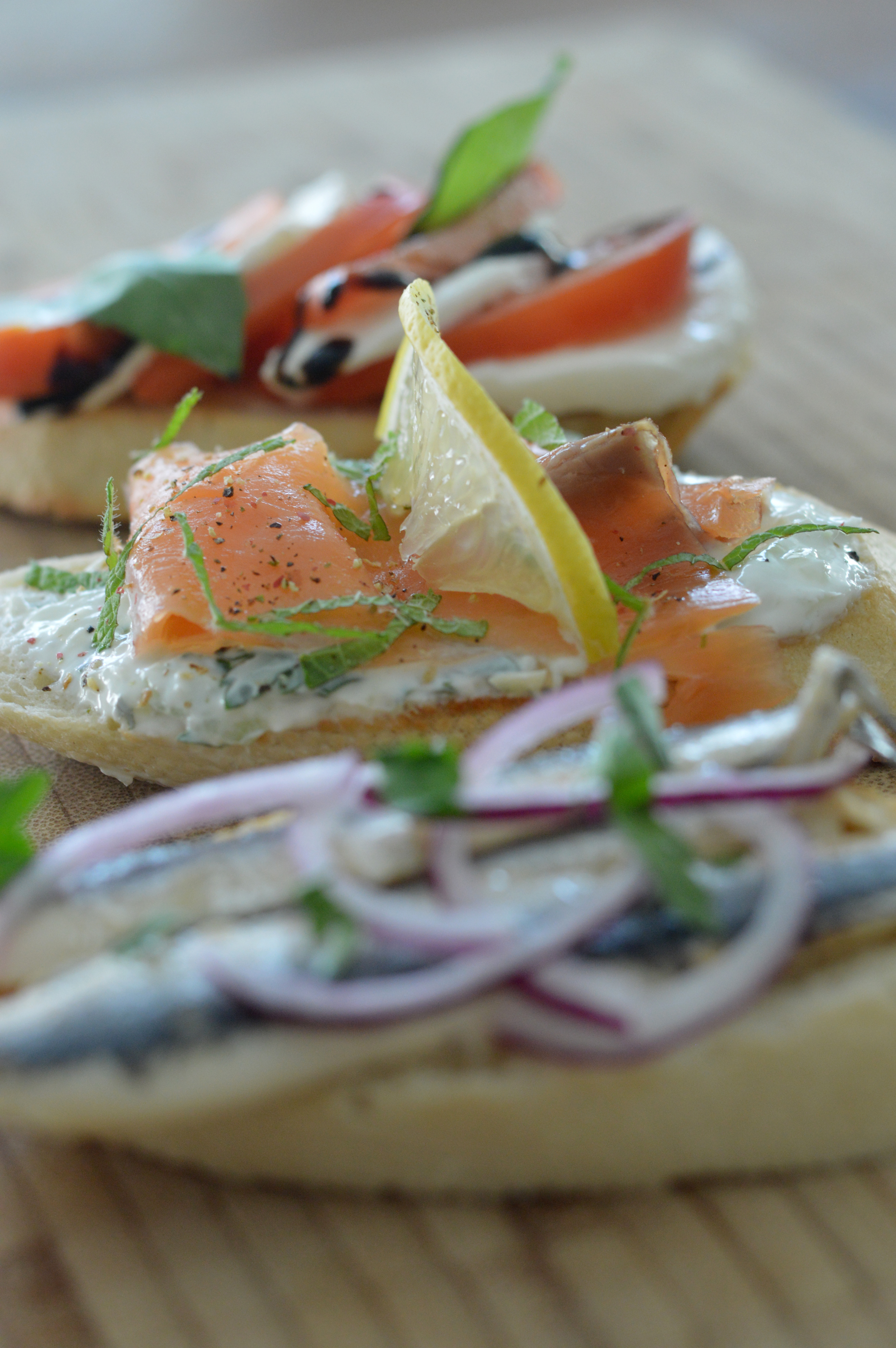 Et maintenant? Toastez votre pain. Emincez l’oignon, la menthe et le persil. Mélangez le tout au fromage blanc, salez et poivrez. Tartinez votre pain avec cette préparation. Ajoutez à votre tapas le saumon, un peu de menthe émincé et du citron.