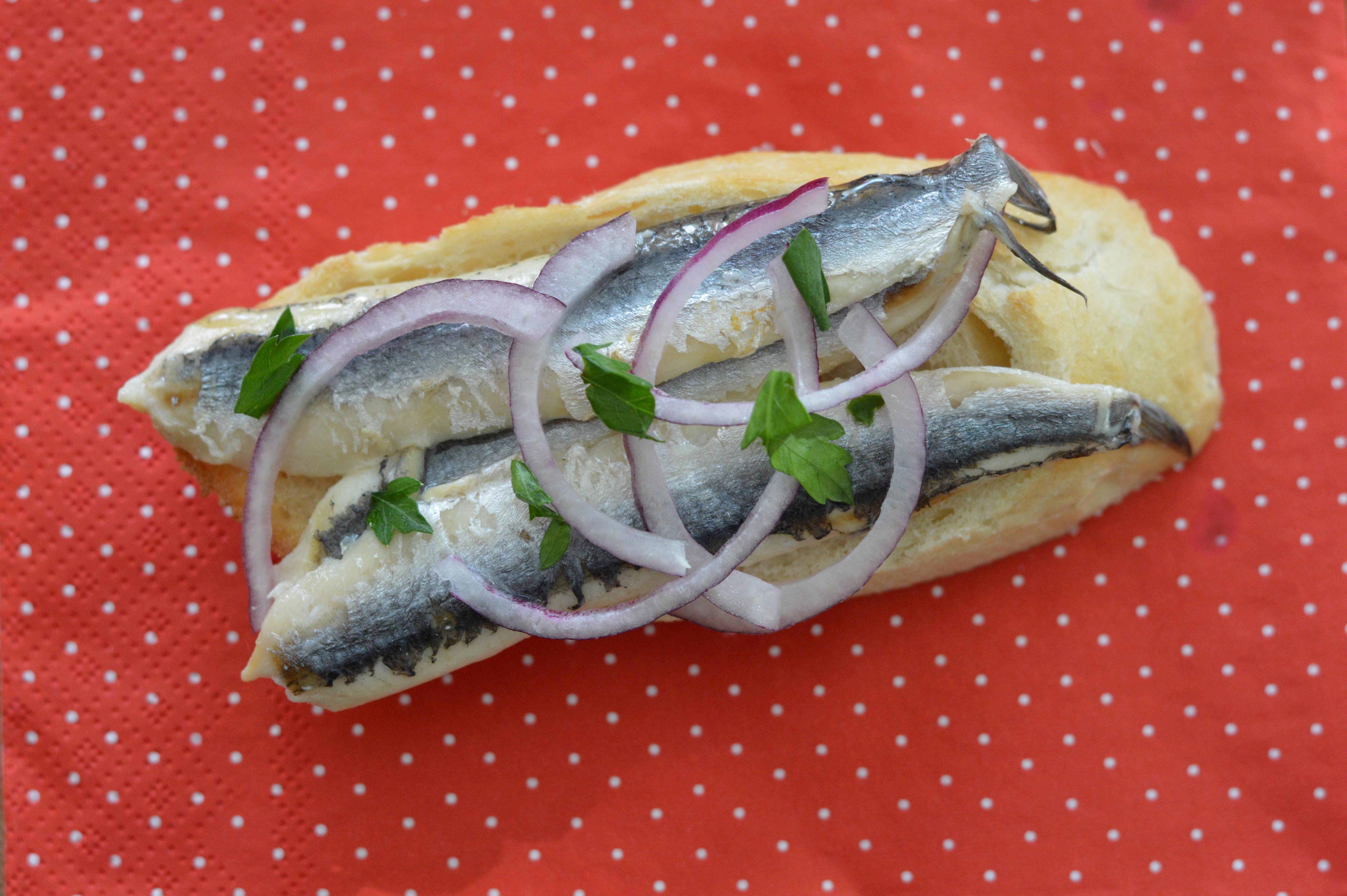 Et maintenant? Toastez votre pain, déposez-y les anchois marinés et terminez avec les oignons rouges passés à la mandoline.