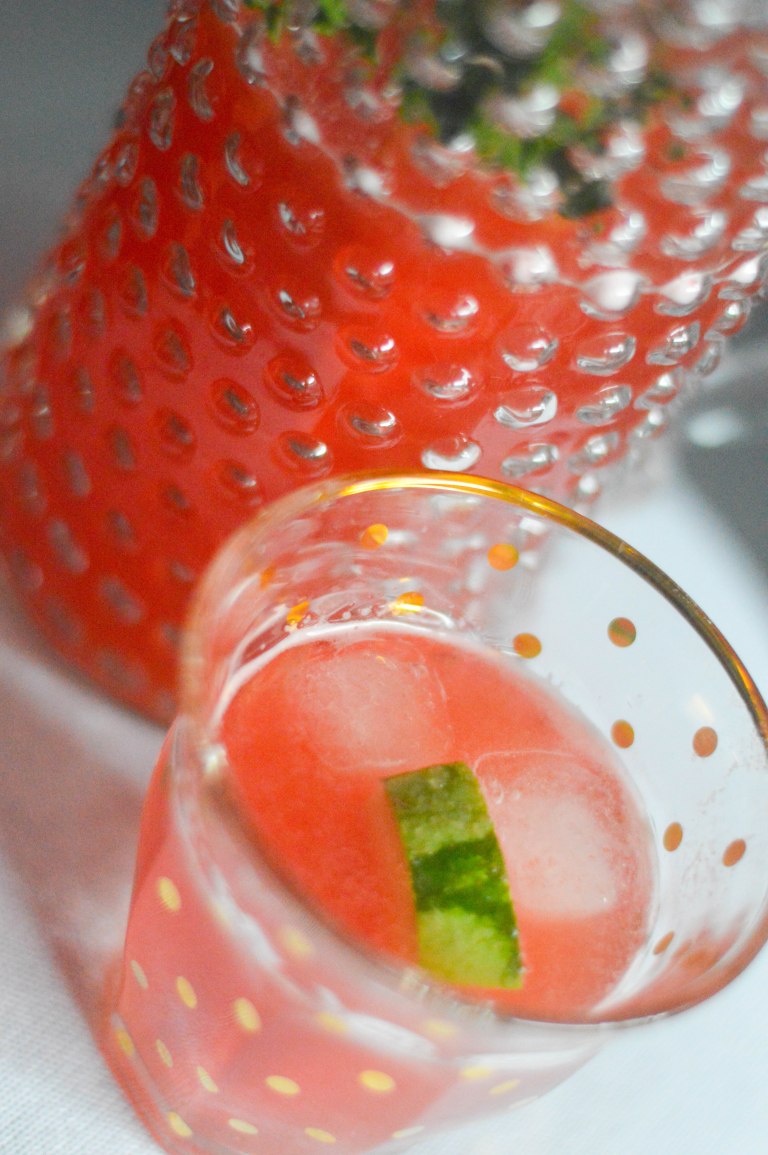 Après l’eau de coco, place à l’eau de pastèque ! On ne le répètera jamais assez, mais en été, il faut s’hydrater… et moi, l’eau, ça me lasse rapidement. J’ai récemment entendu parler de l’eau de pastèque, très en vogue dans l’univers food et dont Beyoncé ne peut apparemment plus se passer ;-) Histoire de changer des morceaux de fraises, framboises ou citron que l’on peut glisser dans sa carafe, j’ai donc voulu tester l’eau à la pastèque. Une alternative plutôt agréable, le léger goût de la pastèque aromatise juste comme il faut la boisson, lui apportant une vraie saveur estivale. Bonus, la pastèque, en plus de désaltérer, contient pleine de bonnes choses pour la santé – vitamines, antioxydants et j’en passe… Alors on en use et en abuse surtout que c’est super bon !