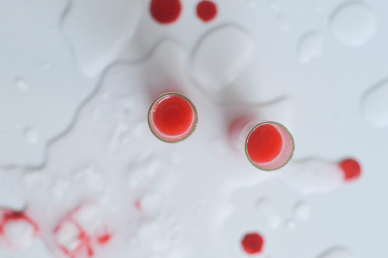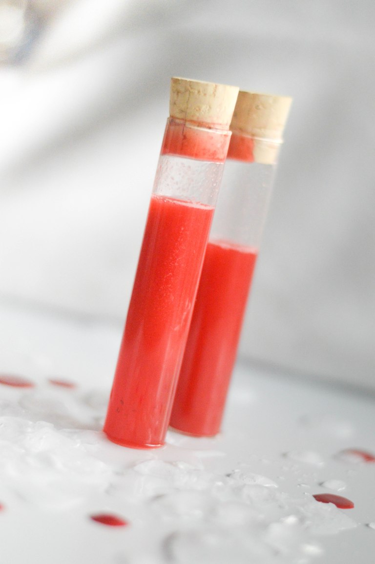 Boooo c’est Halloween ! Les vampires sont de sortie et rien que pour eux, voici quelques fioles de sang à boire tout au long de la nuit du 31… En réalité bien sûr, pas de sang dans ces petits shots, mais des fruits rouges, du tonic et du gin ! Un mélange fruité que je vous invite à servir pour Halloween, comme moi dans des petites fioles, pour une ambiance « laboratoire de l’horreur » ou dans une grande carafe pleine de glaçons en forme de mains par exemple (pour en réaliser, utilisez un gant de caoutchouc, remplissez-le d’eau et hop au congélateur!).