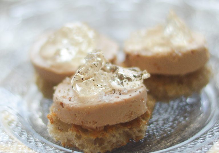 Dressez les toasts de foie gras sur du pain grillé. Ajoutez un dé de gelée et de la fleur de sel.