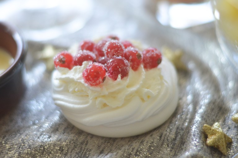 Et maintenant ? Équeutez les groseilles et roulez-les dans le sucre. Mettre de la chantilly sur les meringues et ajoutez les groseilles en guise de décoration.