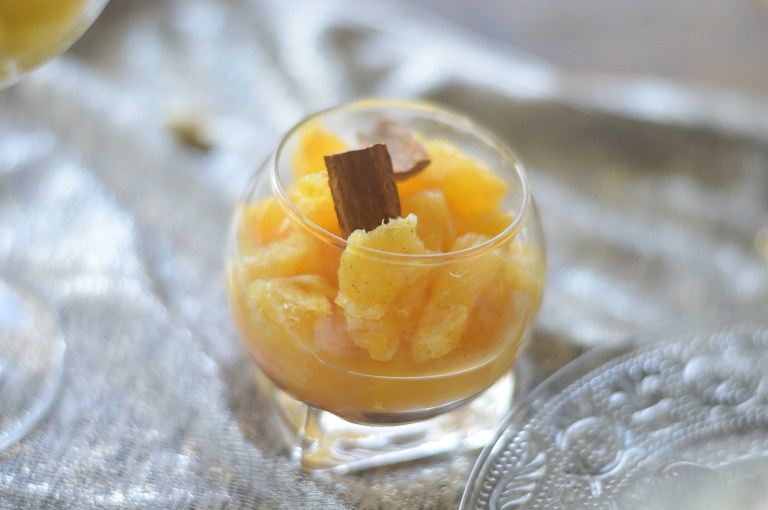 Et maintenant  ? Pelez les oranges et découpez la chair en petits morceaux. Saupoudrez de cannelle, mélangez et laissez mariner 30 min. Dressez dans une verrine.