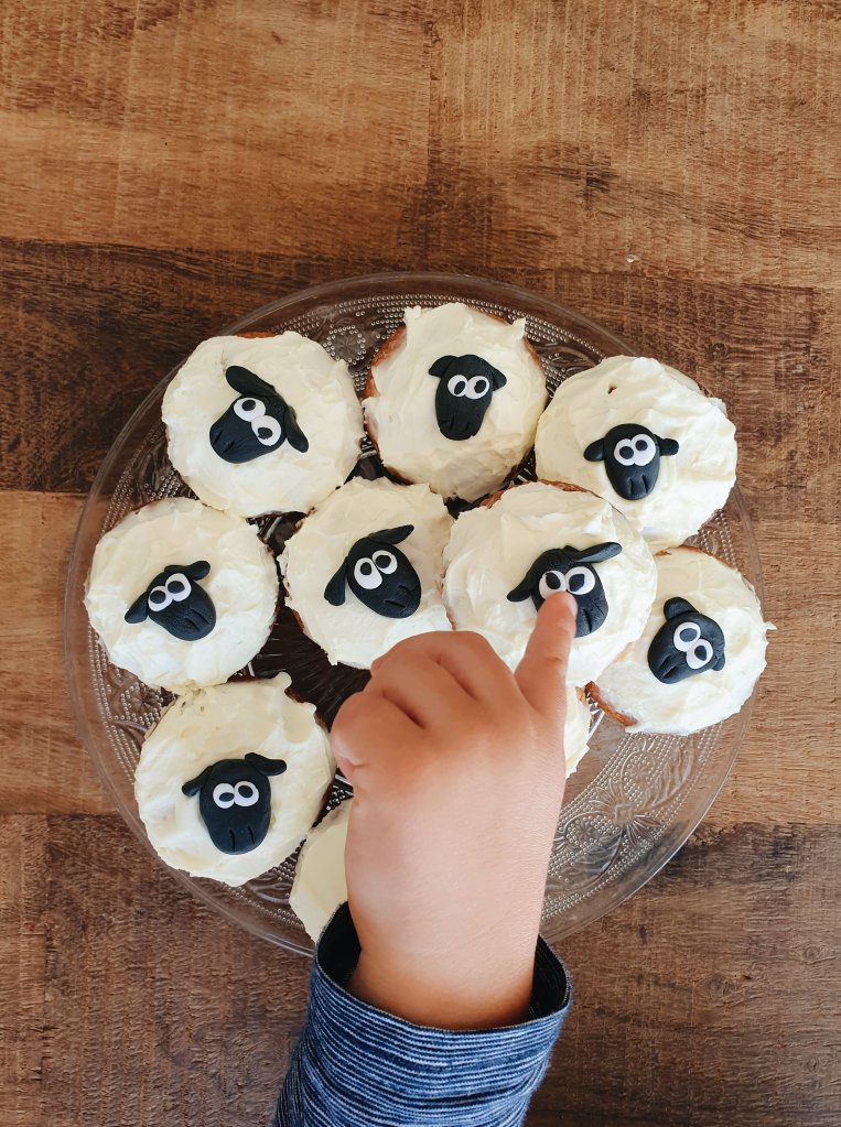 Bon le seul petit problème, c’est que Félix n’a pas voulu manger les gâteaux en entier, mais seulement la base du muffin. Il n’a pas du tout voulu toucher au glaçage et à la tête de Shaun the Sheep… Pourquoi ? « Pas manger mouton Maman » Ben oui, forcément… ;-)