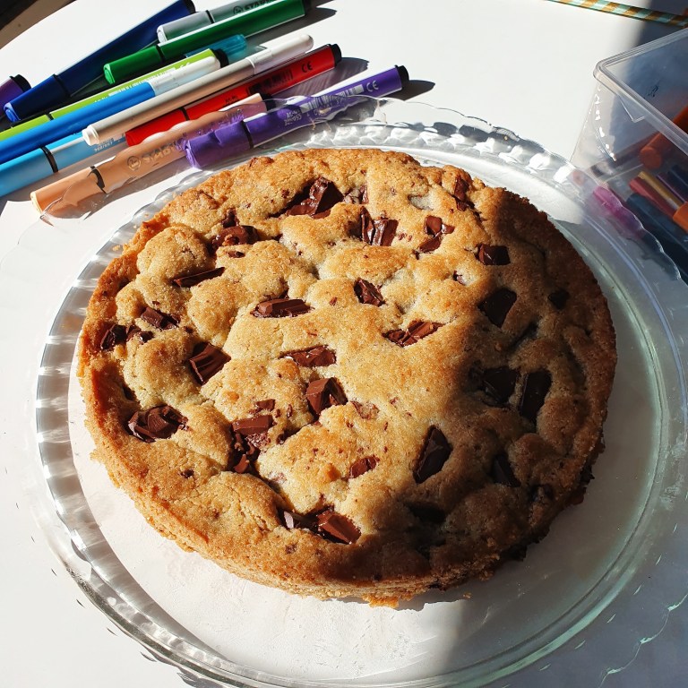 Le cookie, c’est un peu le biscuit qui fait l’unanimité. Alors en version géant, je ne vous dis pas l’enthousiasme ! Cette recette est la première que j’ai réalisé durant ce confinement, avec Félix, mon fils de presque 3 ans, qui a presque tout fait tout seule et surtout, qui mangé pas mal de pâte crue – mais comment lui en vouloir, c’est trop bon…