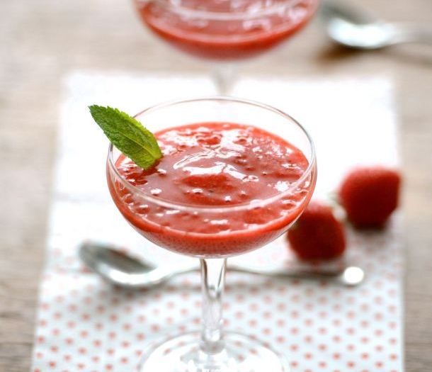 Soupe fraises et menthe fraîche